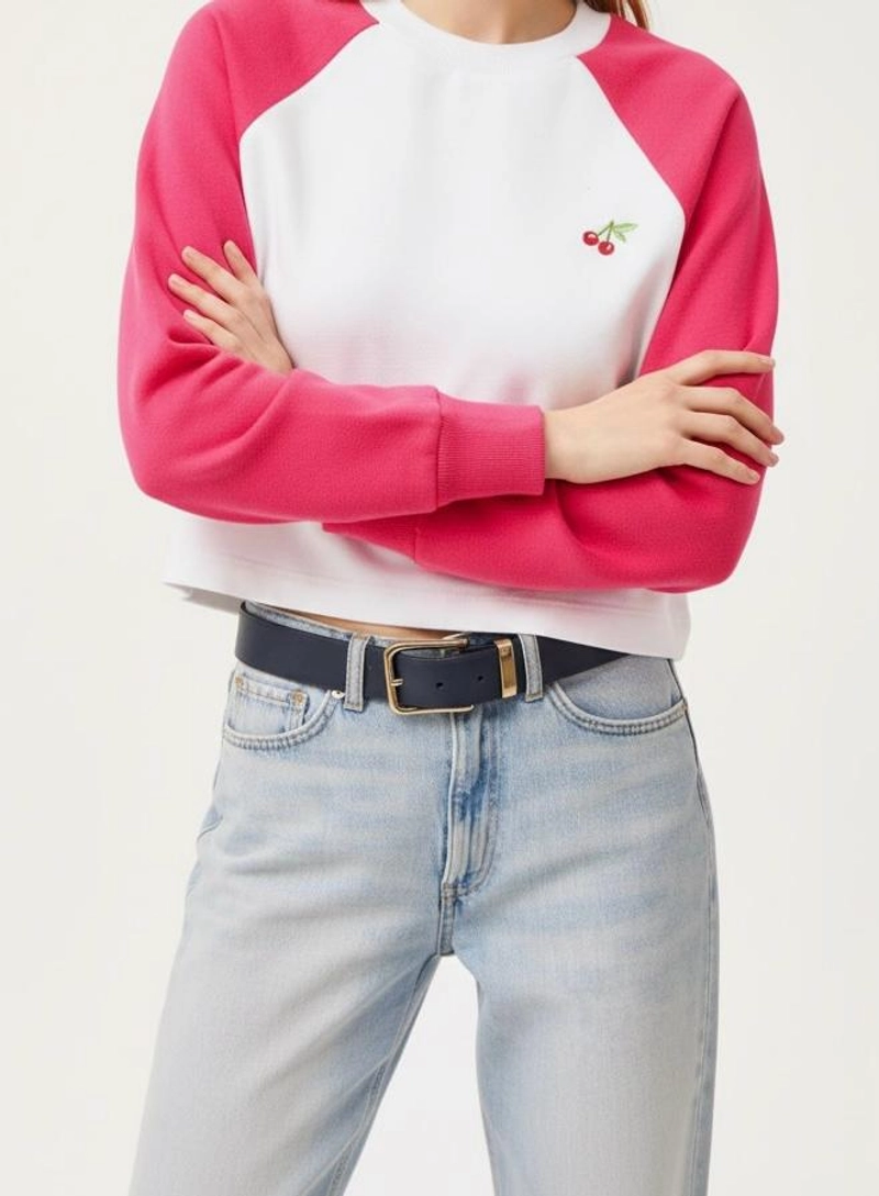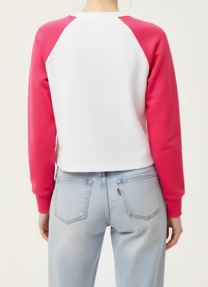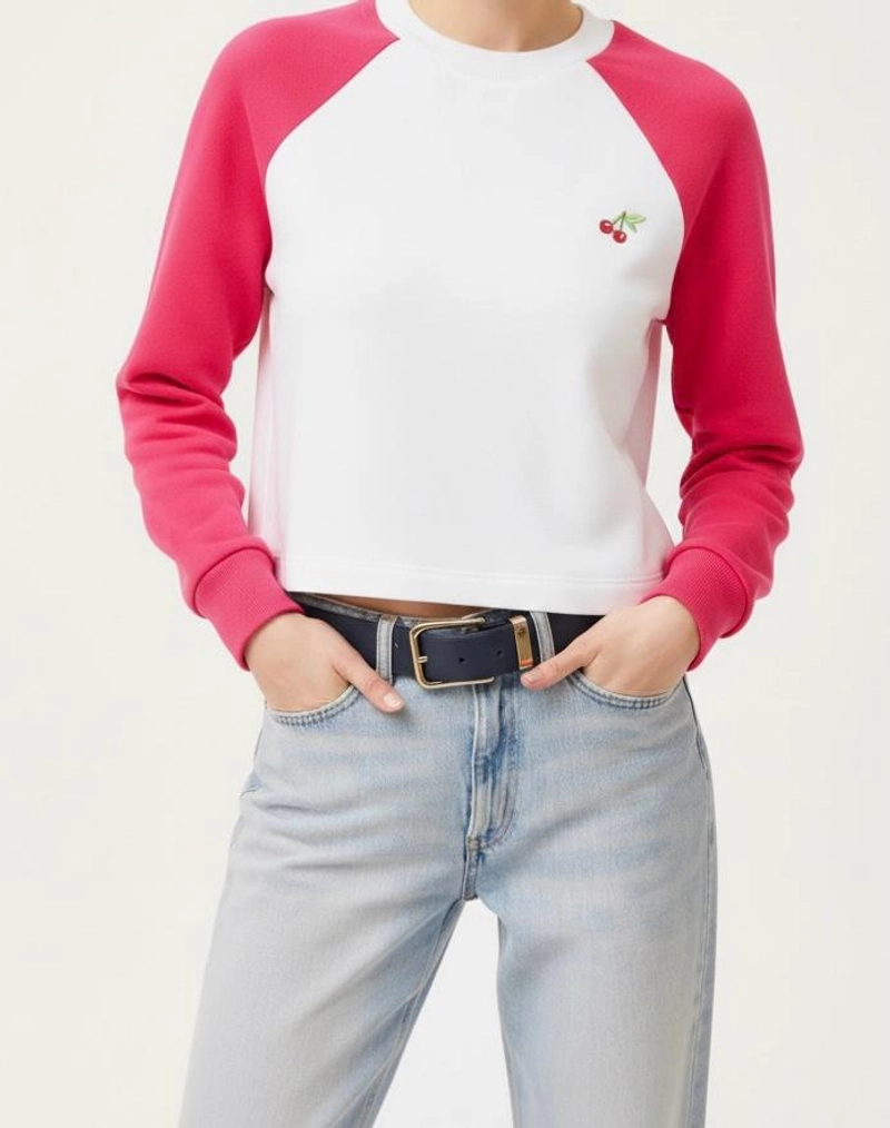 Warm Winter Sweatshirt | Women's Cherry Embroidered Pink and White 3-Thread Brushed Raglan Sleeve Sweatshirt