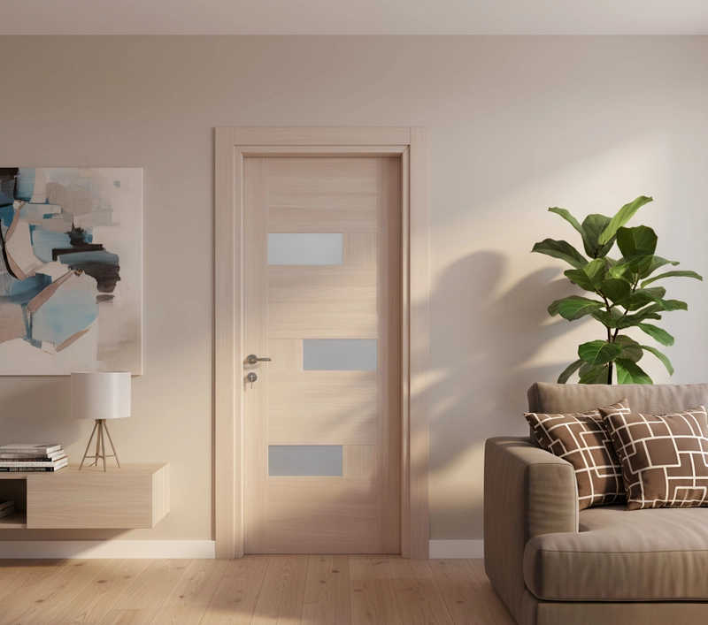 Natural Oak Veneer Wooden Door with Glass – GB11 – 1V