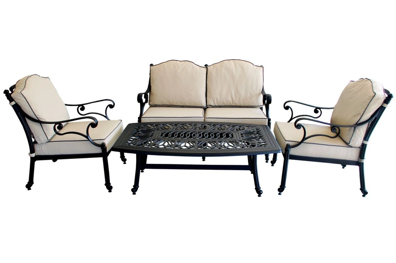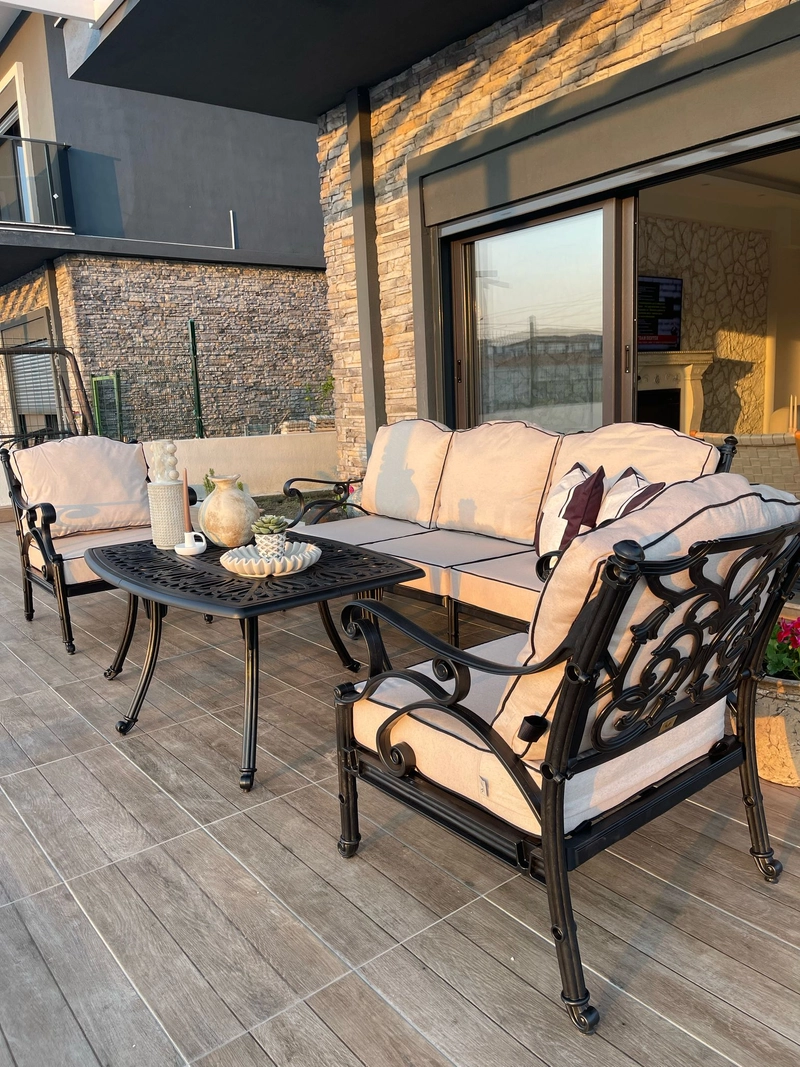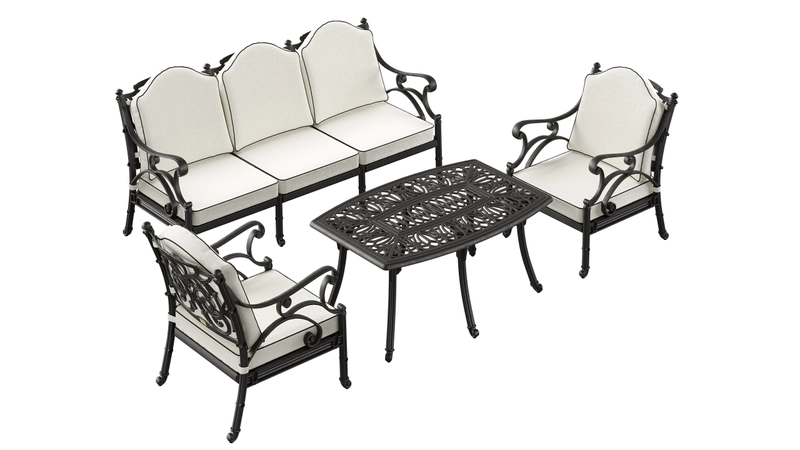 Sofa Set Elegant UV Resistant Wrought Iron Look Lightweight Durable Zero Maintenance Furniture