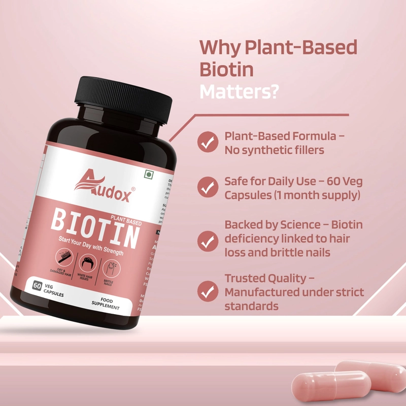 Biotin Plant-Based - Healthy Hair, Stronger Nails & Radiant Skin | 60 Veg Capsules