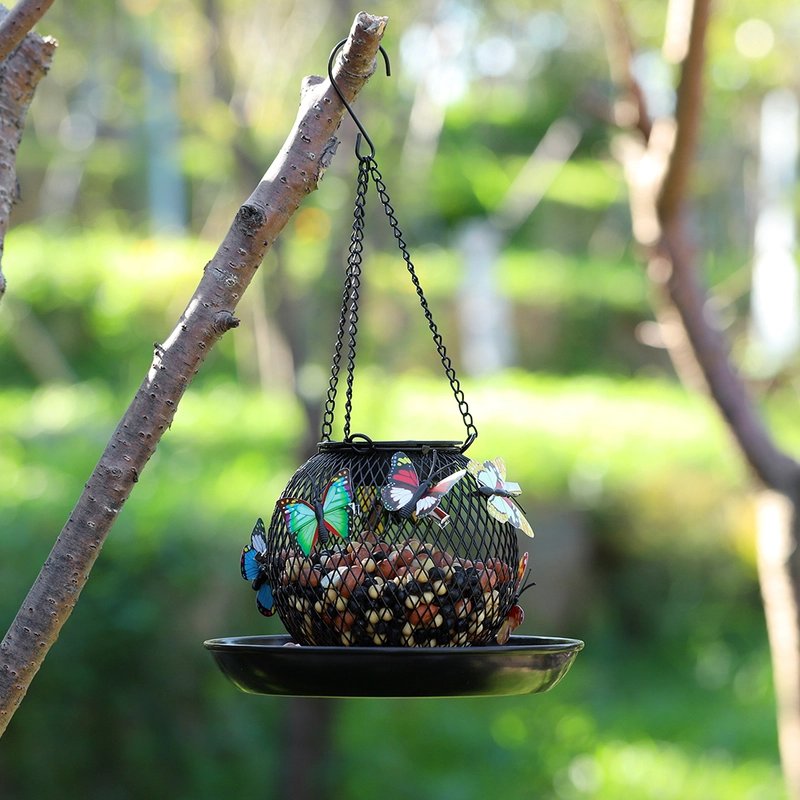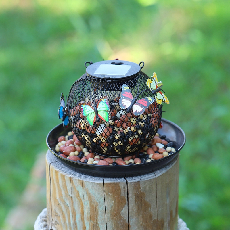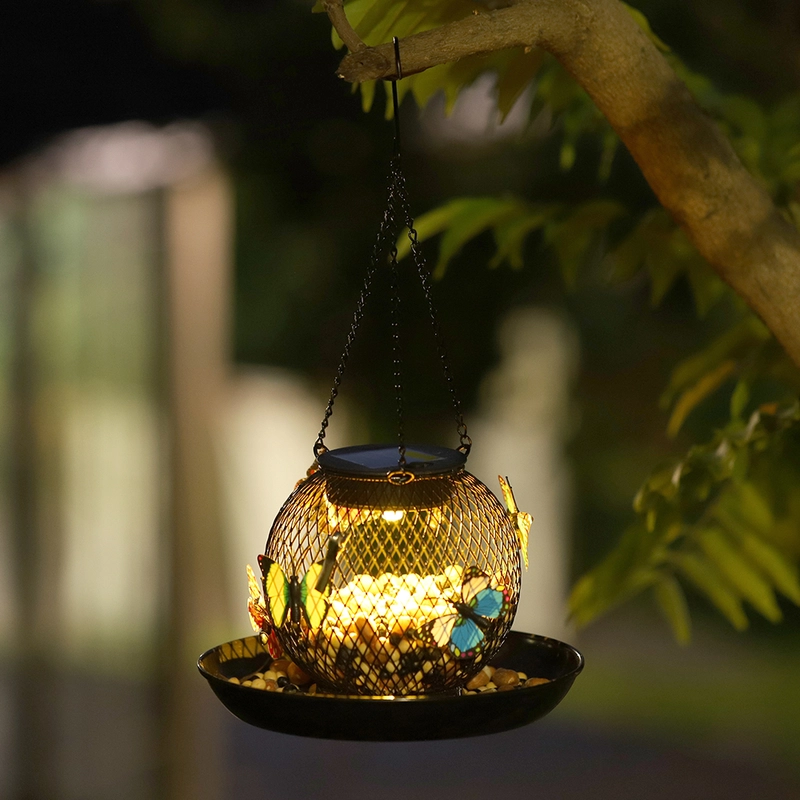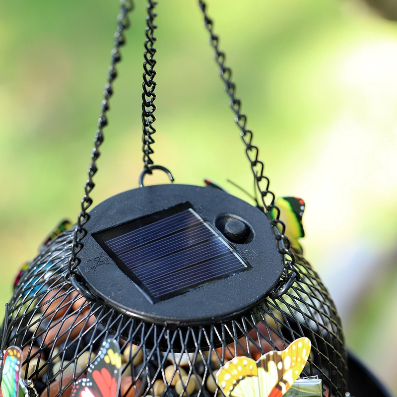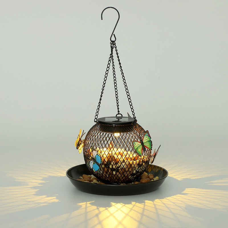 Solar Metal Mesh Hanging Bird Feeder with LED Light
