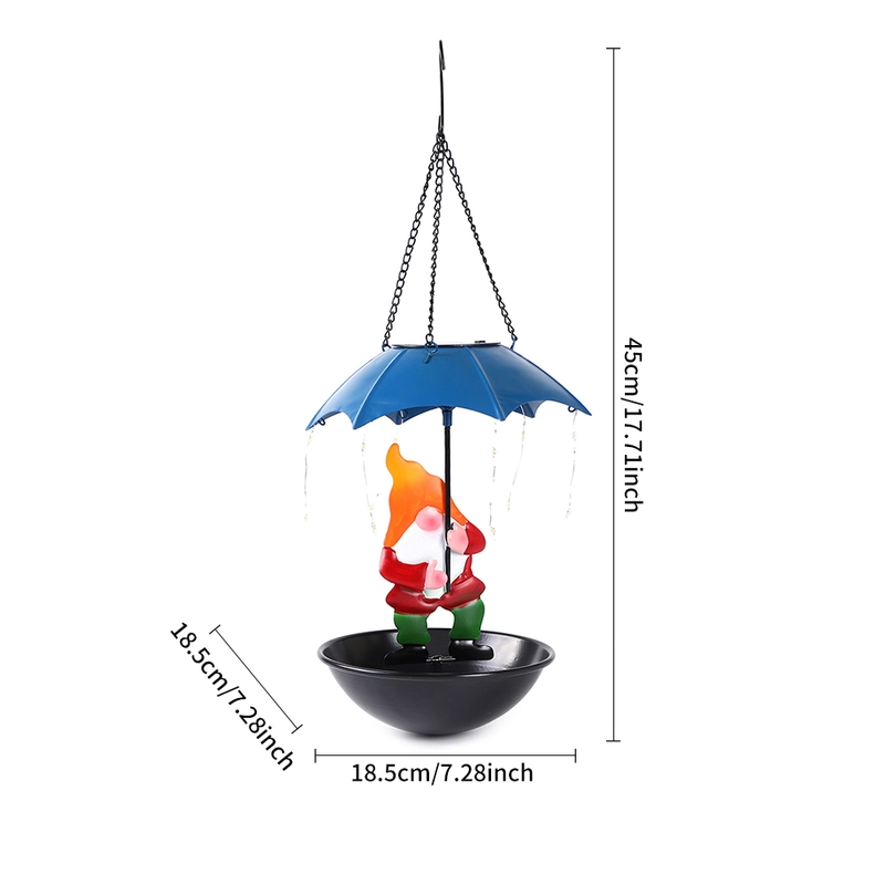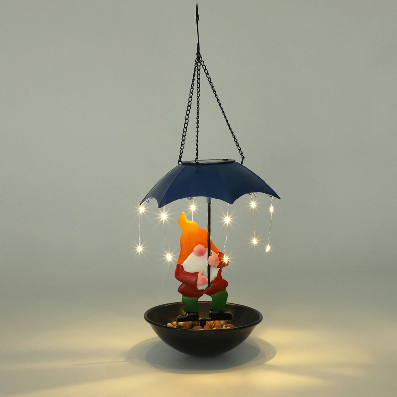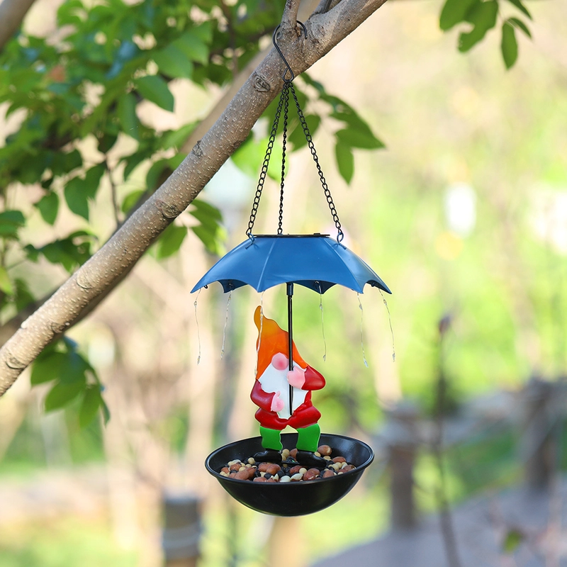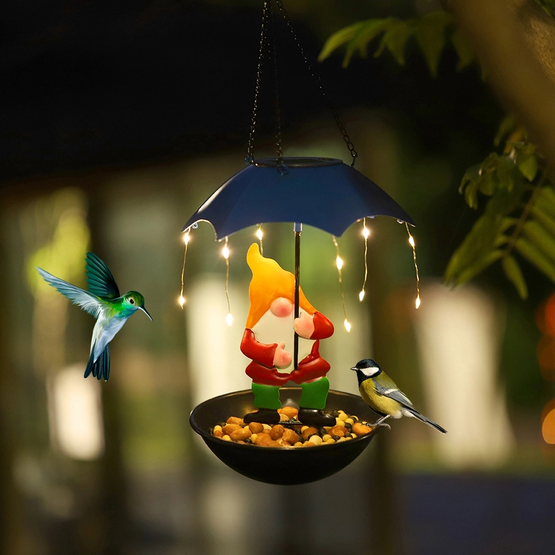 QZTrendies Solar Hanging Gnome Bird Feeder with LED String Lights