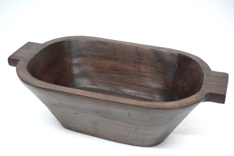 Dark Brown Finish Mango Wooden Bowl, Dimension:15"L X 8"W X 5"H
