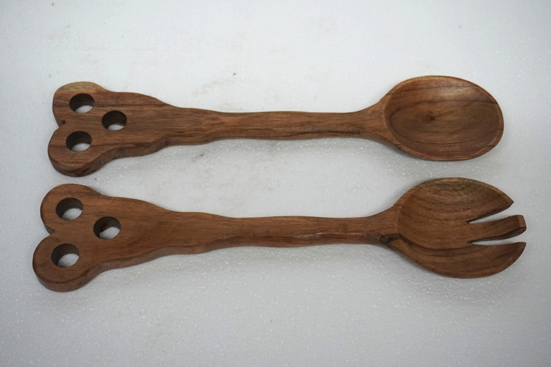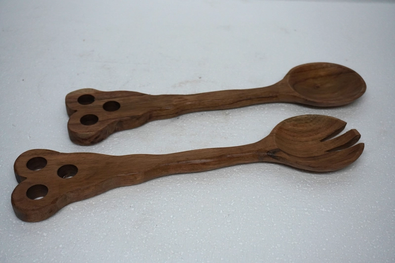 Dark Brown Finish Mango Wood Salad Server set of 2, Dimension: 13.5"L X 2.5"W