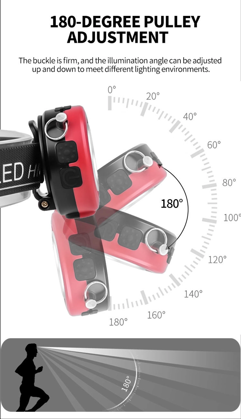Powerful Rechargeable Sensor Head Flashlight With angle Adjustable For Fishing Led Headlamp Camping Headlights Hunting Lantern