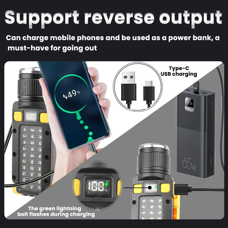 High Brightness 4000mAh Rechargeable Outdoor LED Type-c Charging Portable Lighting Lamp Magnet Hook Work Light