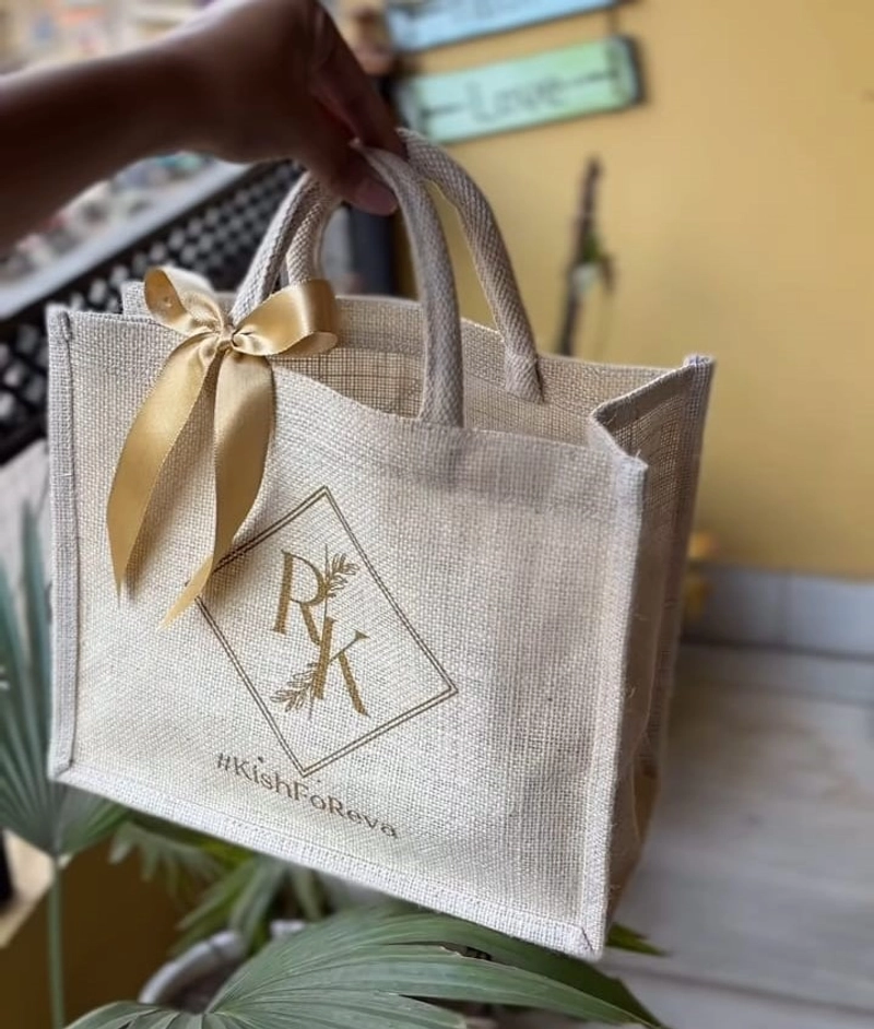 Jute Custom Printed Bags Nonwoven Jute Plastic Paper Shopping Grocery Packaging