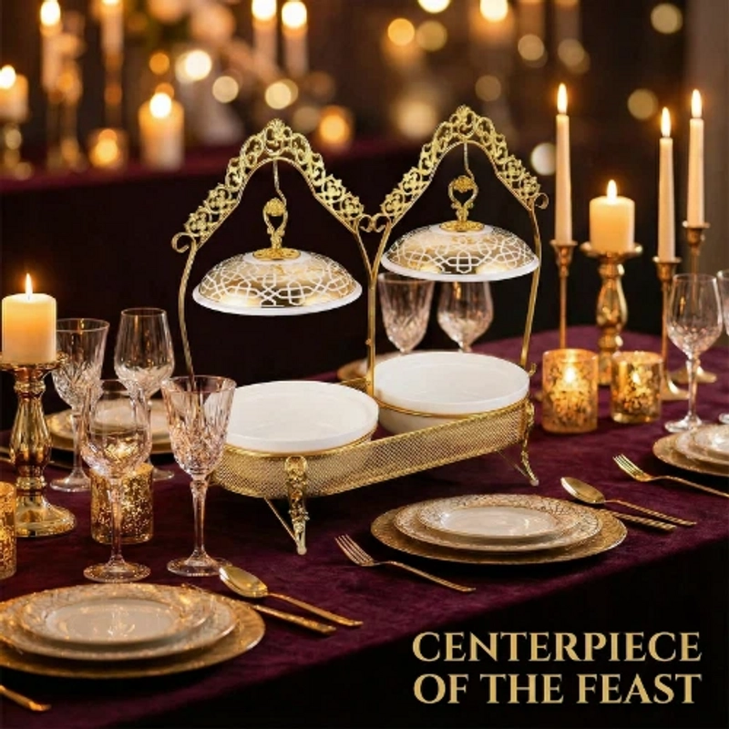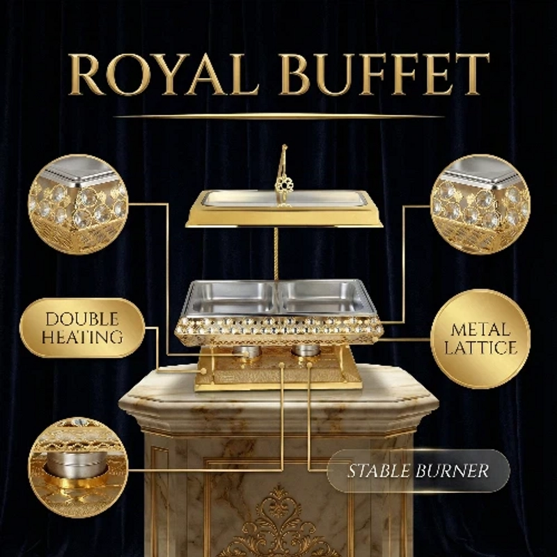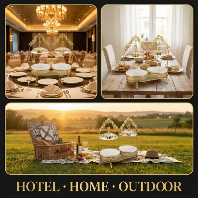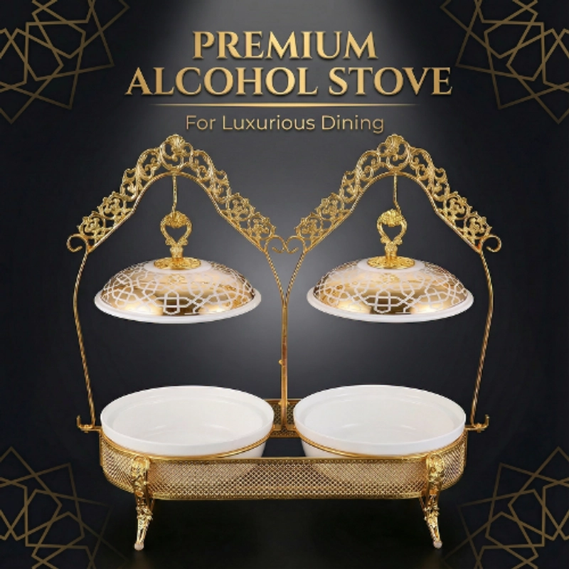 Premium Double Burner Alcohol Chafing Dish Elegant European Style | Ideal for Home & Buffet Use