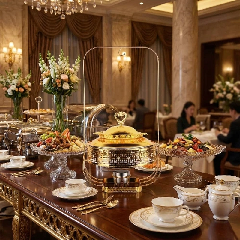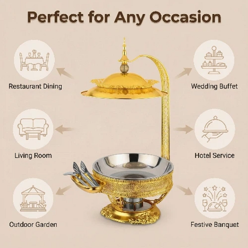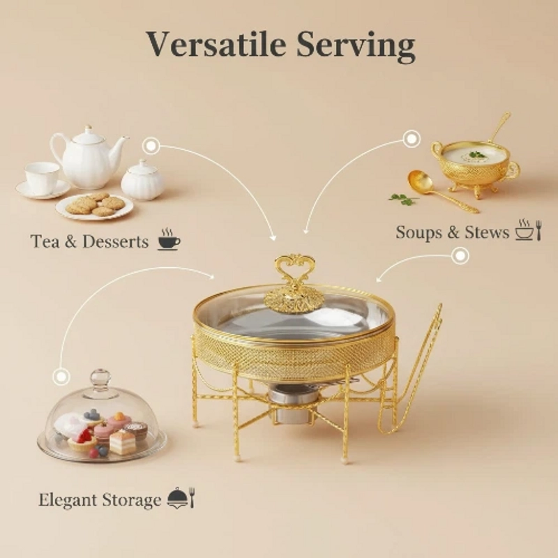Luxury Gold Alcohol Chafing Dish Elegant Buffet Warmer for Home & Professional Use