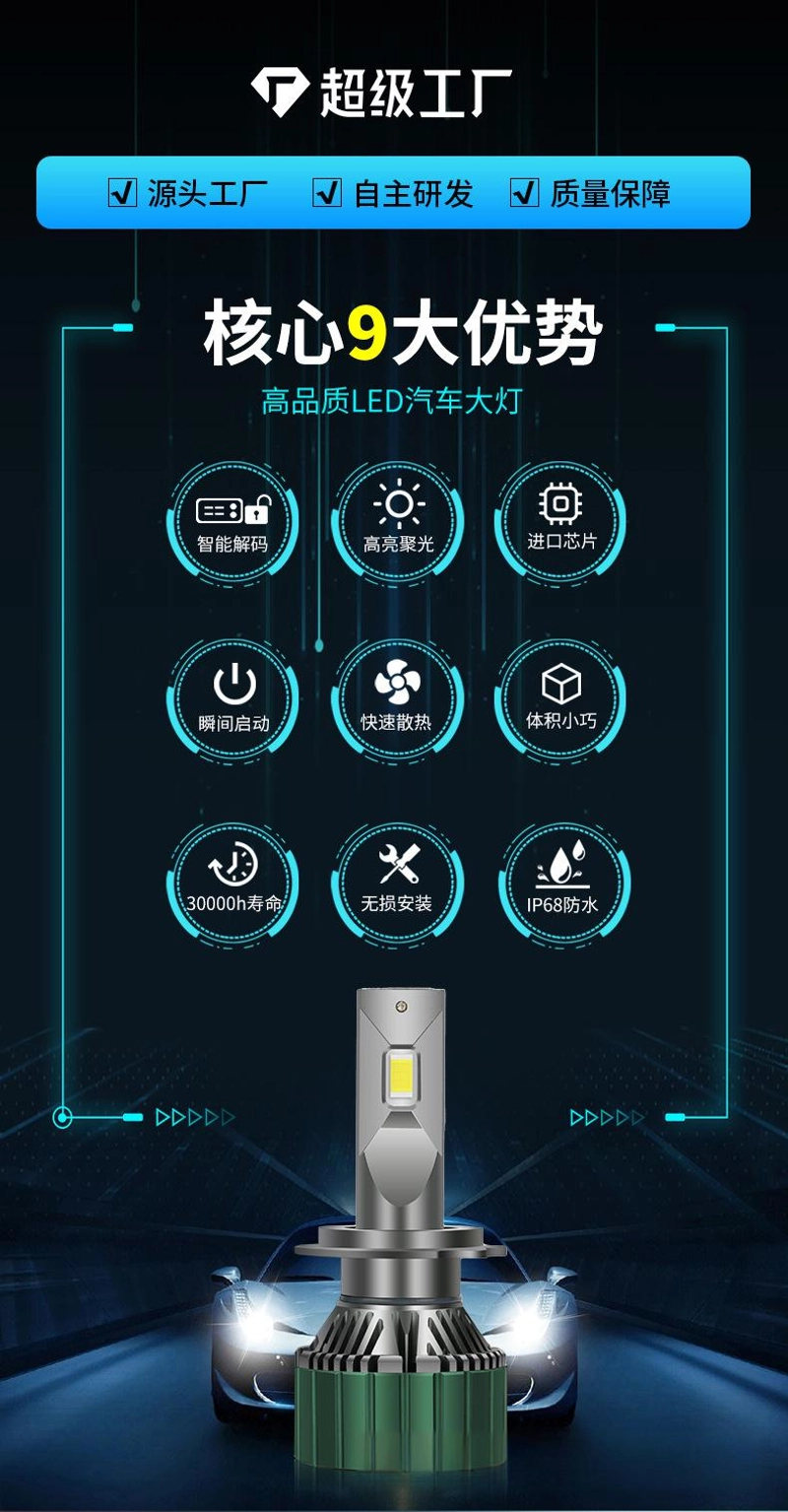 New car LED headlights: H7 bulbs, H11 low beam, H1 high beam, H4 integrated high and low beam, 9005 car light modification.