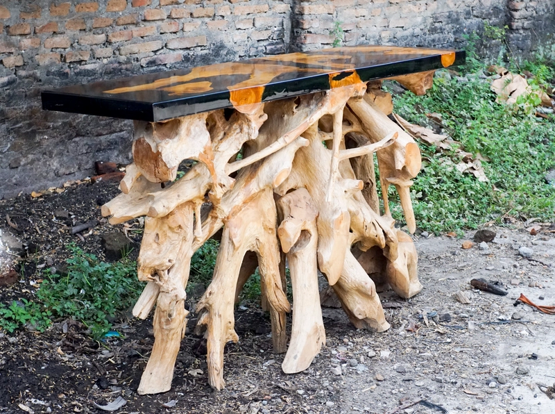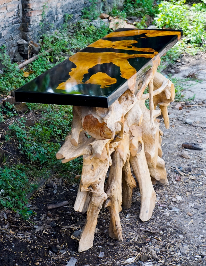 Teak root epoxy resin console table