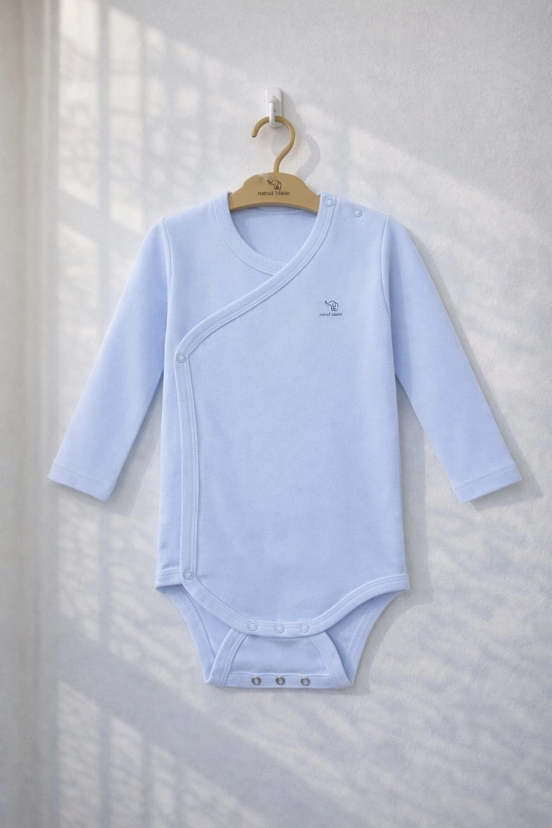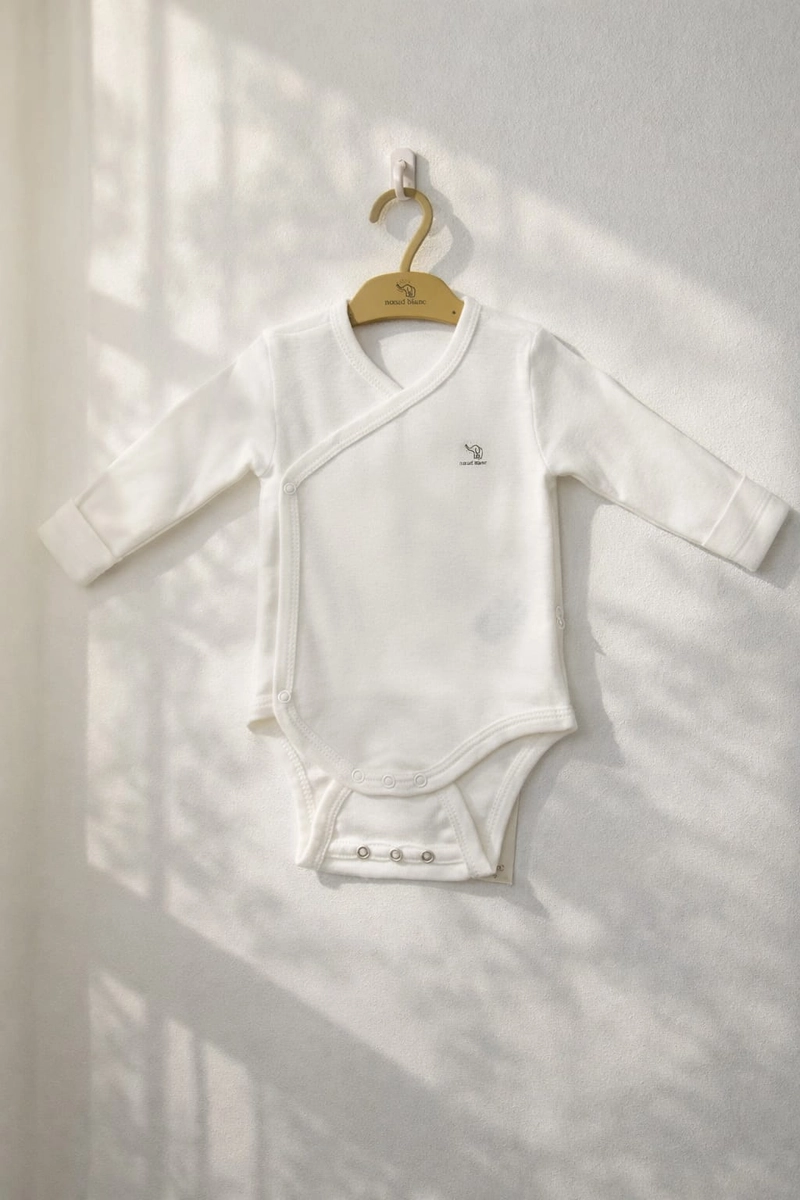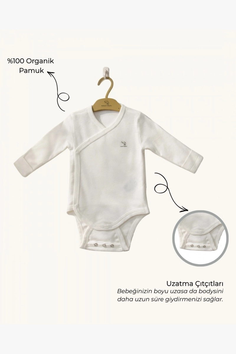 Double Breasted Organic Cotton Baby Bodysuit Adjustable Poppers Built In Mittens Newborn Comfort