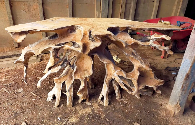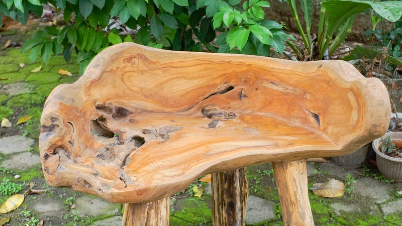 Solid teak root bench for outdoor furniture