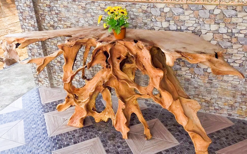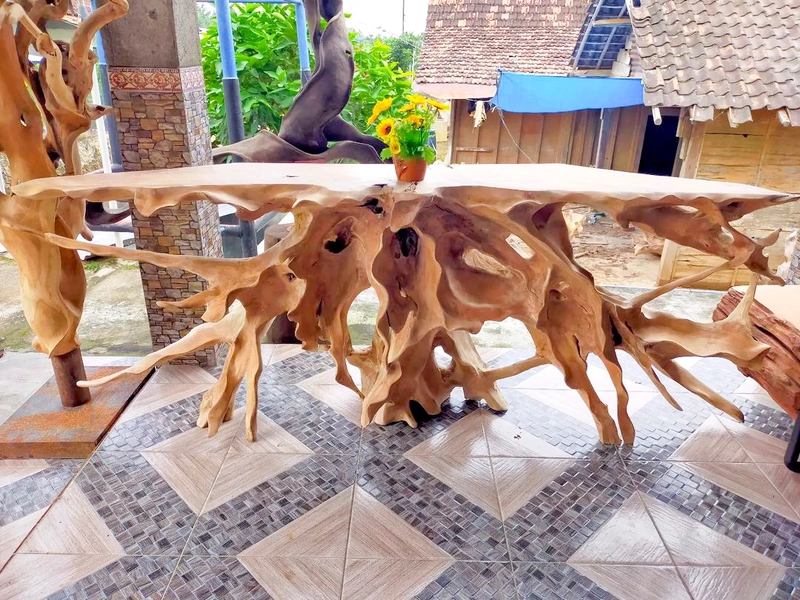 Teak root carving console table