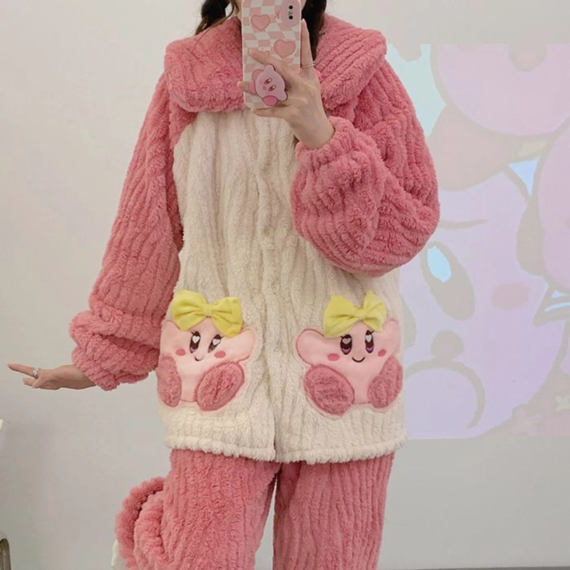 Women Long Sleeve Plush Cardigan Pajamas Fleece Lined Winter Cozy Sleepwear