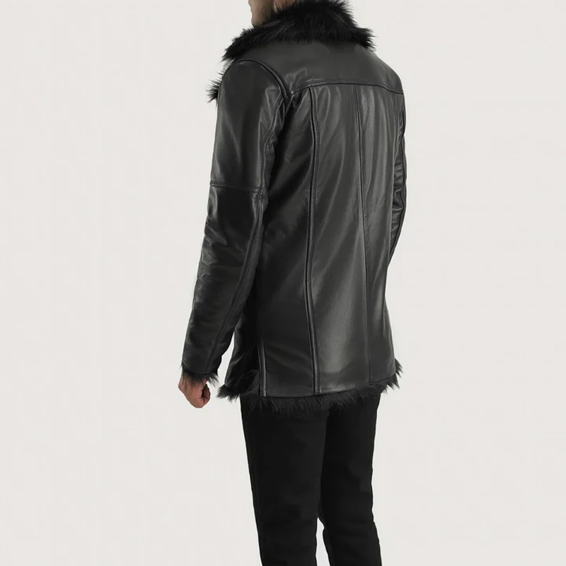 Furcliff Men's Black Leather Faux Fur Coat | Sheepskin Black